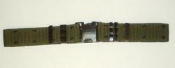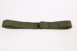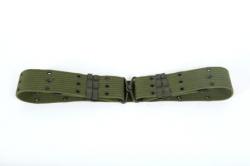 - strong olive drab webbing with metal fittings and a plastic buckle
